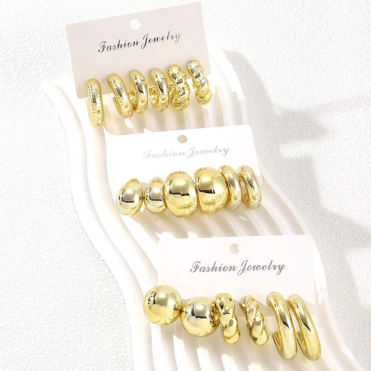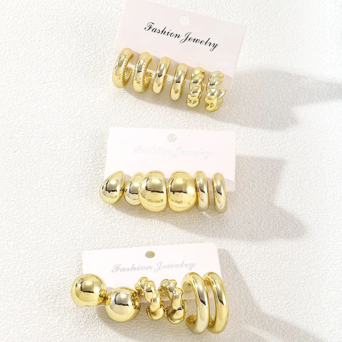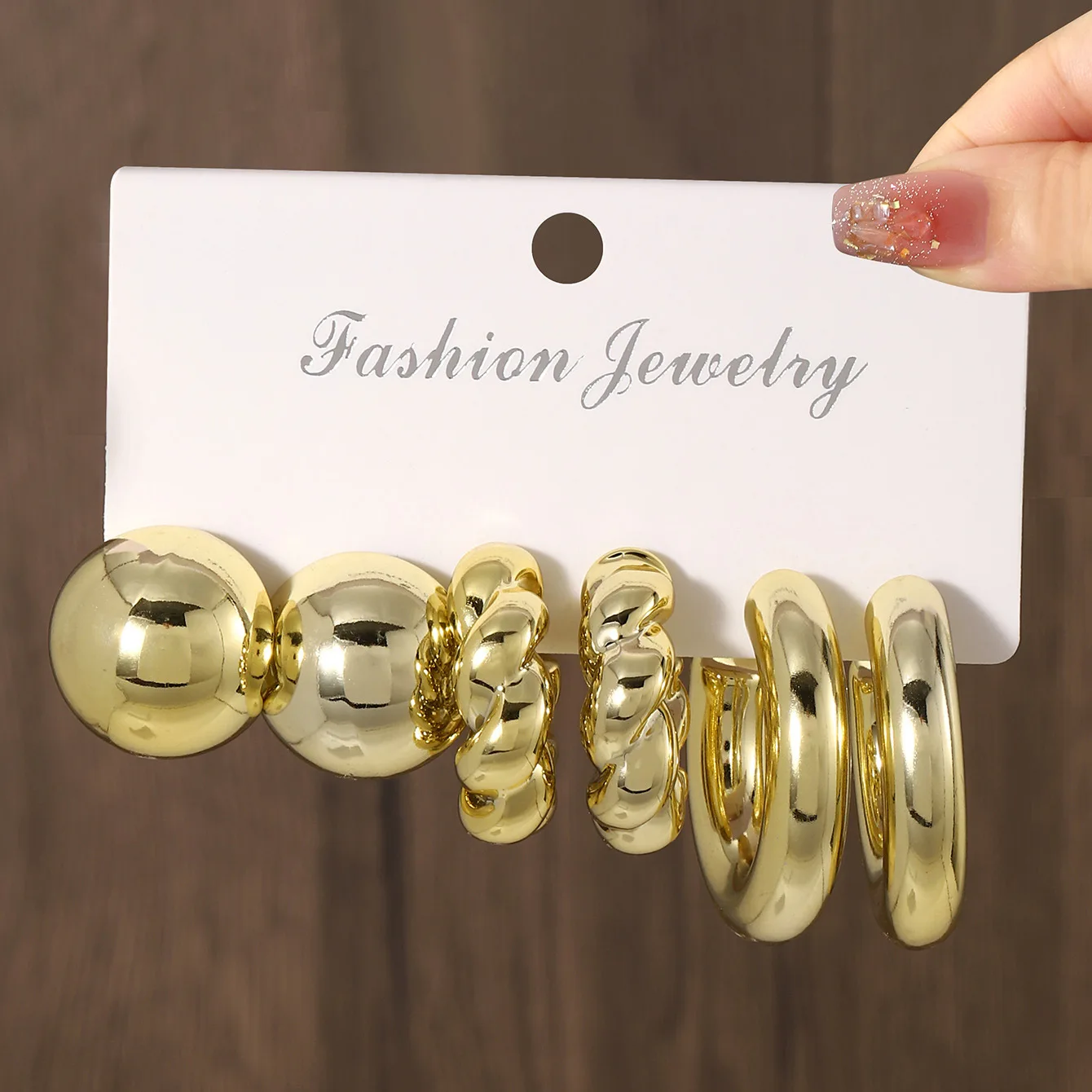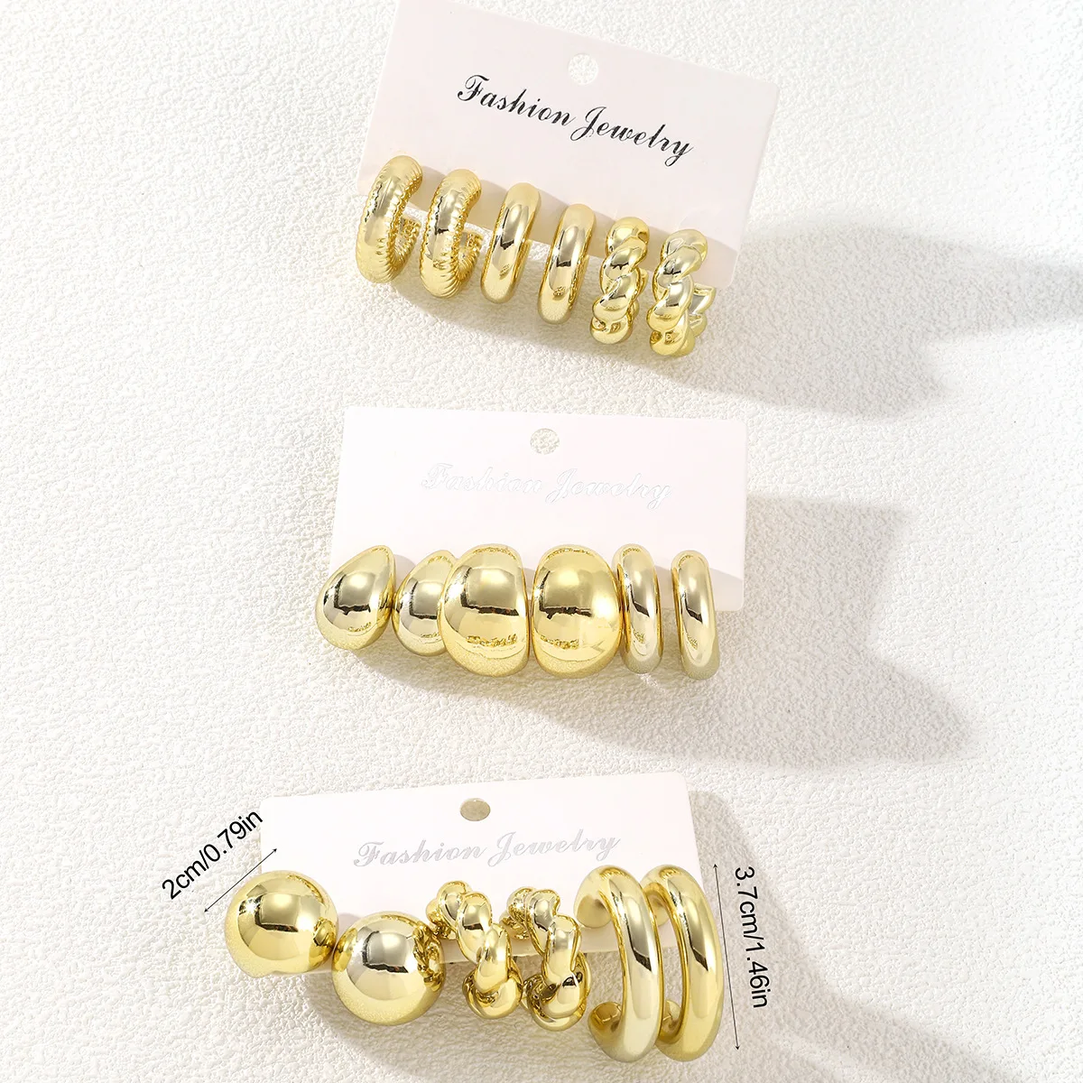 Punk Smooth Metal C-shaped Earrings Fashion Thick Water Drop Stud Earrings Women's Vintage Aesthetic Set Jewelry