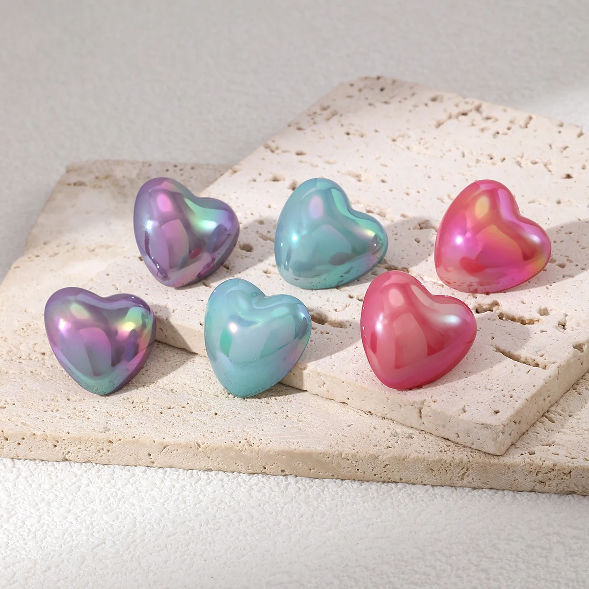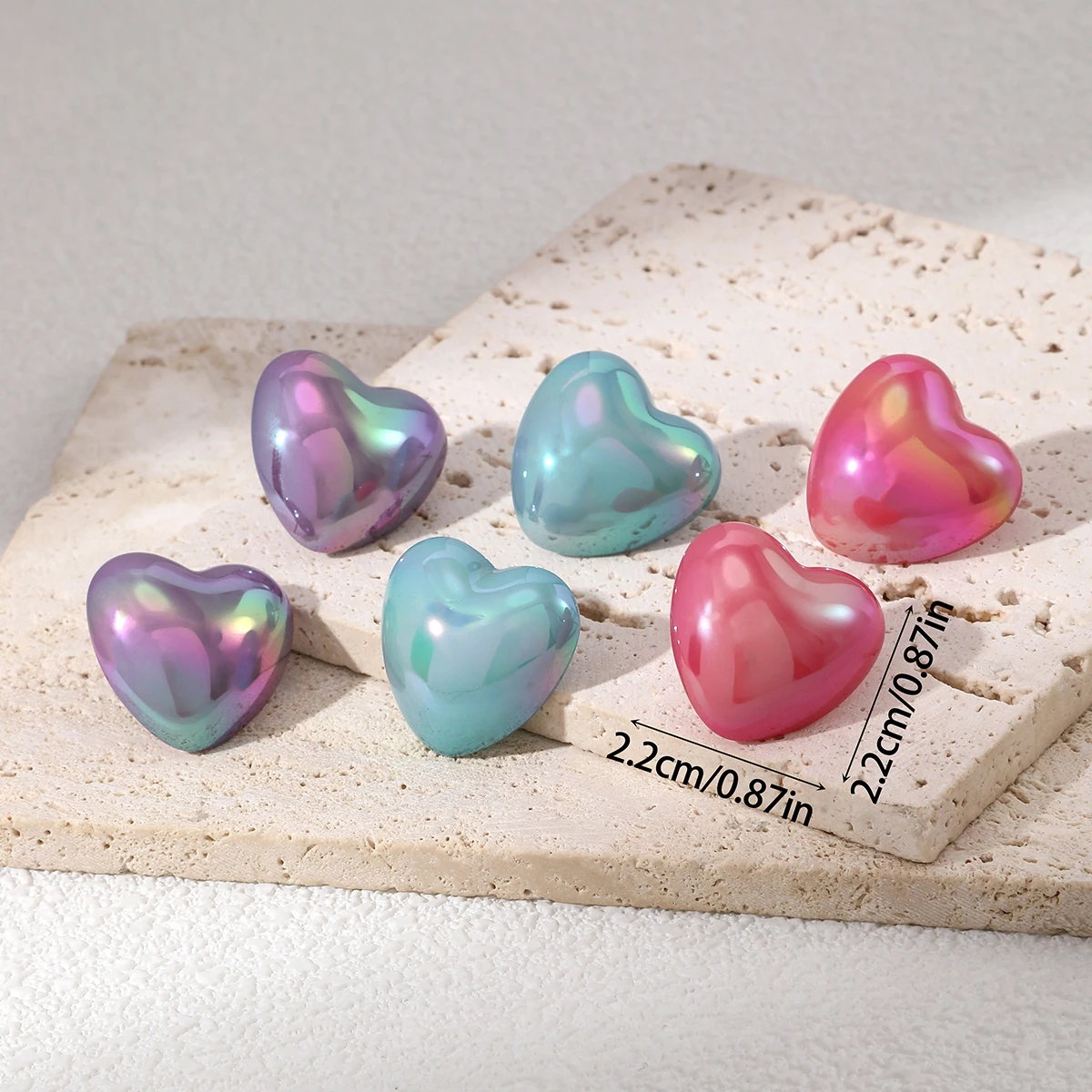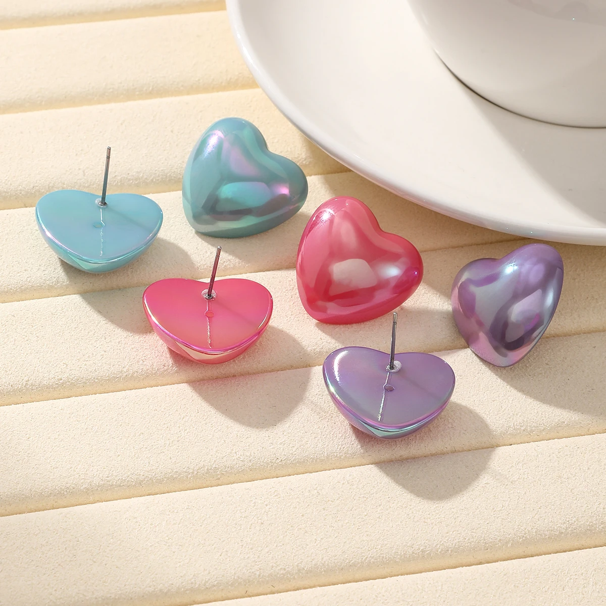 • Fashion Multi-color Acrylic Heart-shaped Stud Earrings Creative Sparkling Colorful Earrings Women's Elegant Daily Party Jewelry