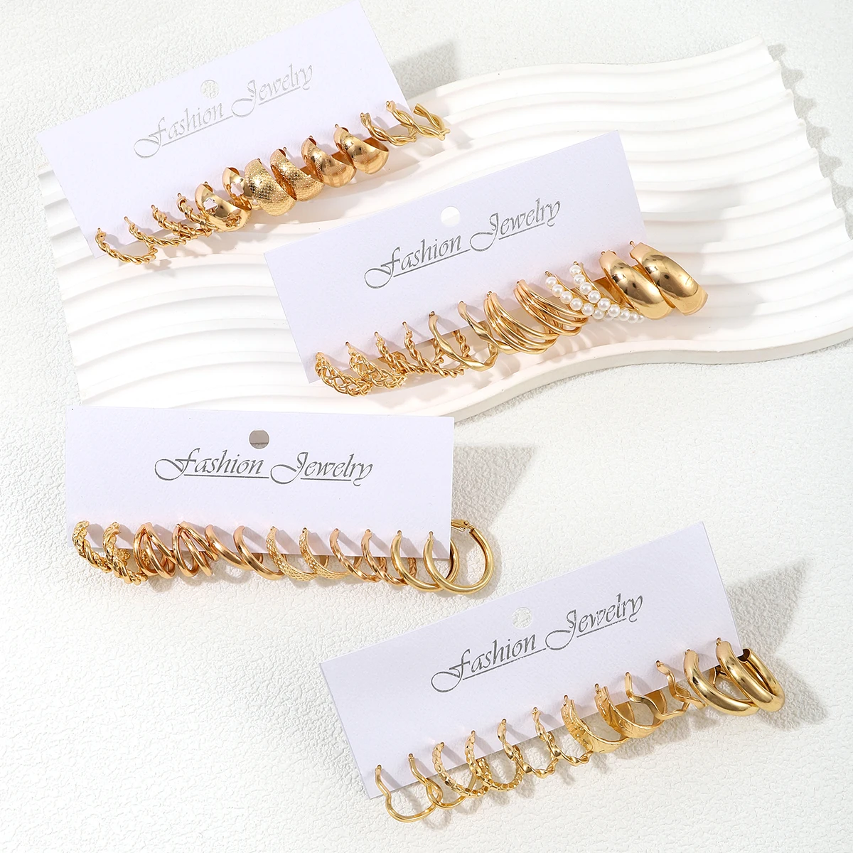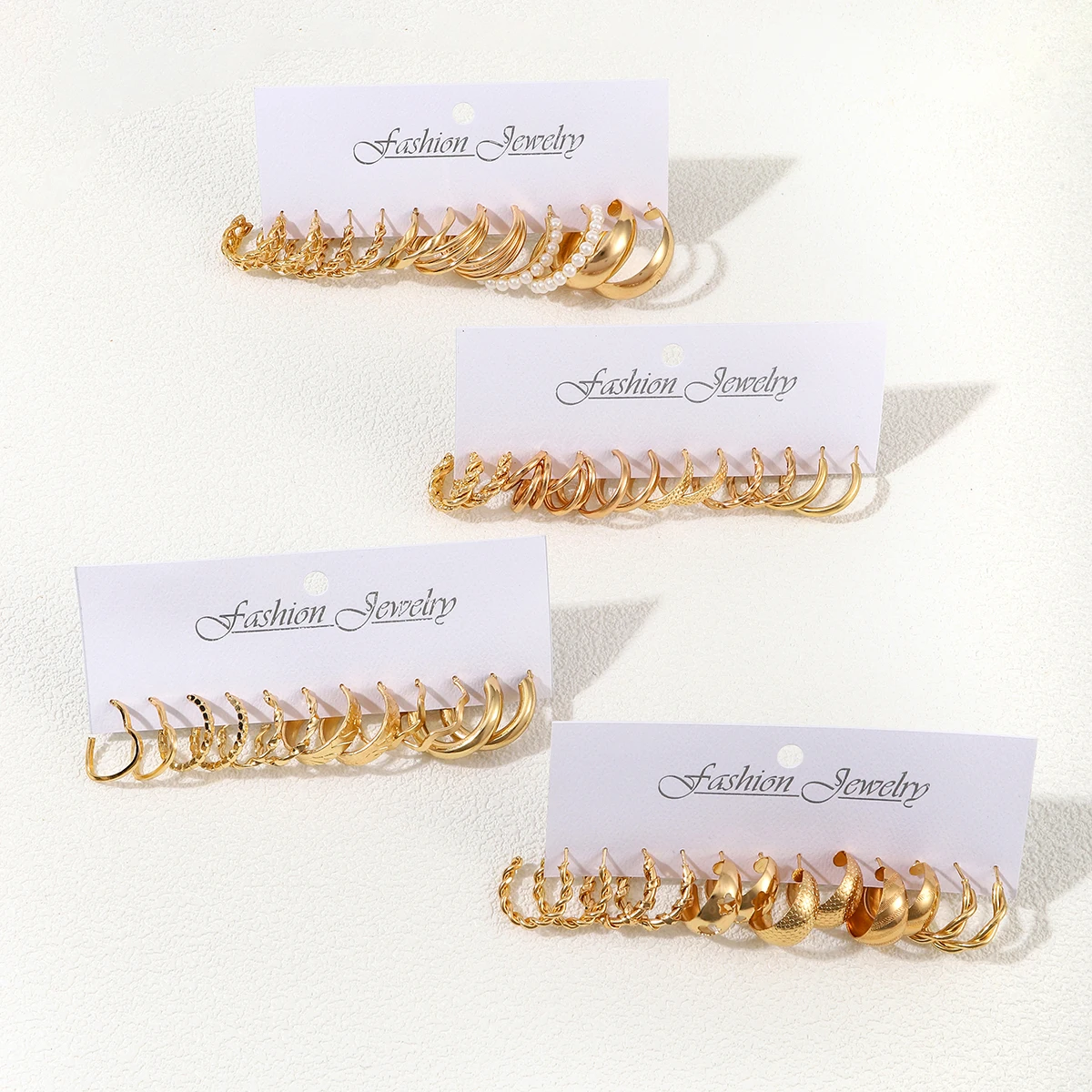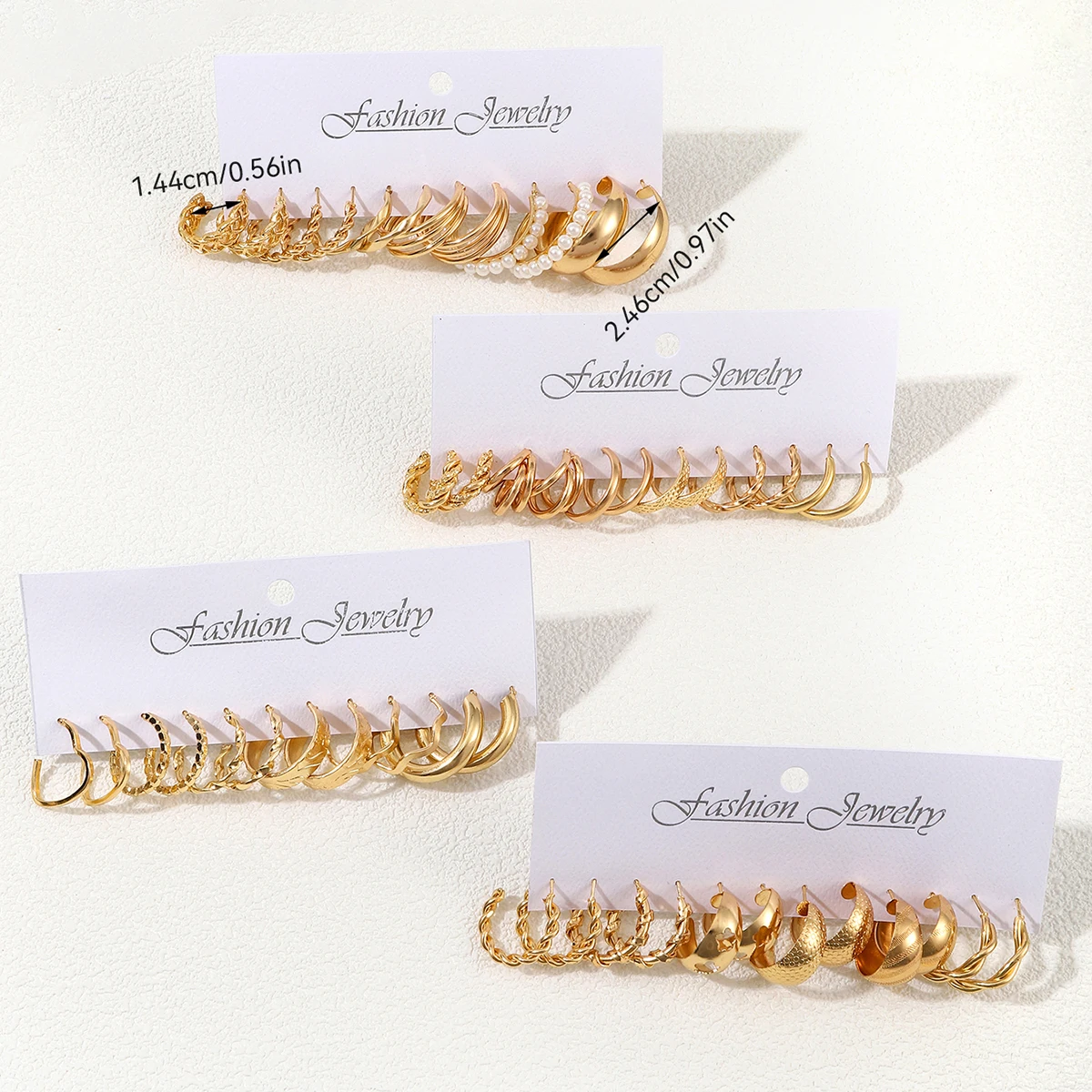 48Pcs Fashion Hollow Flower Stud Earrings Punk Geometry Twisted C-shaped Earring Set for Women's Trendy Party Jewelry