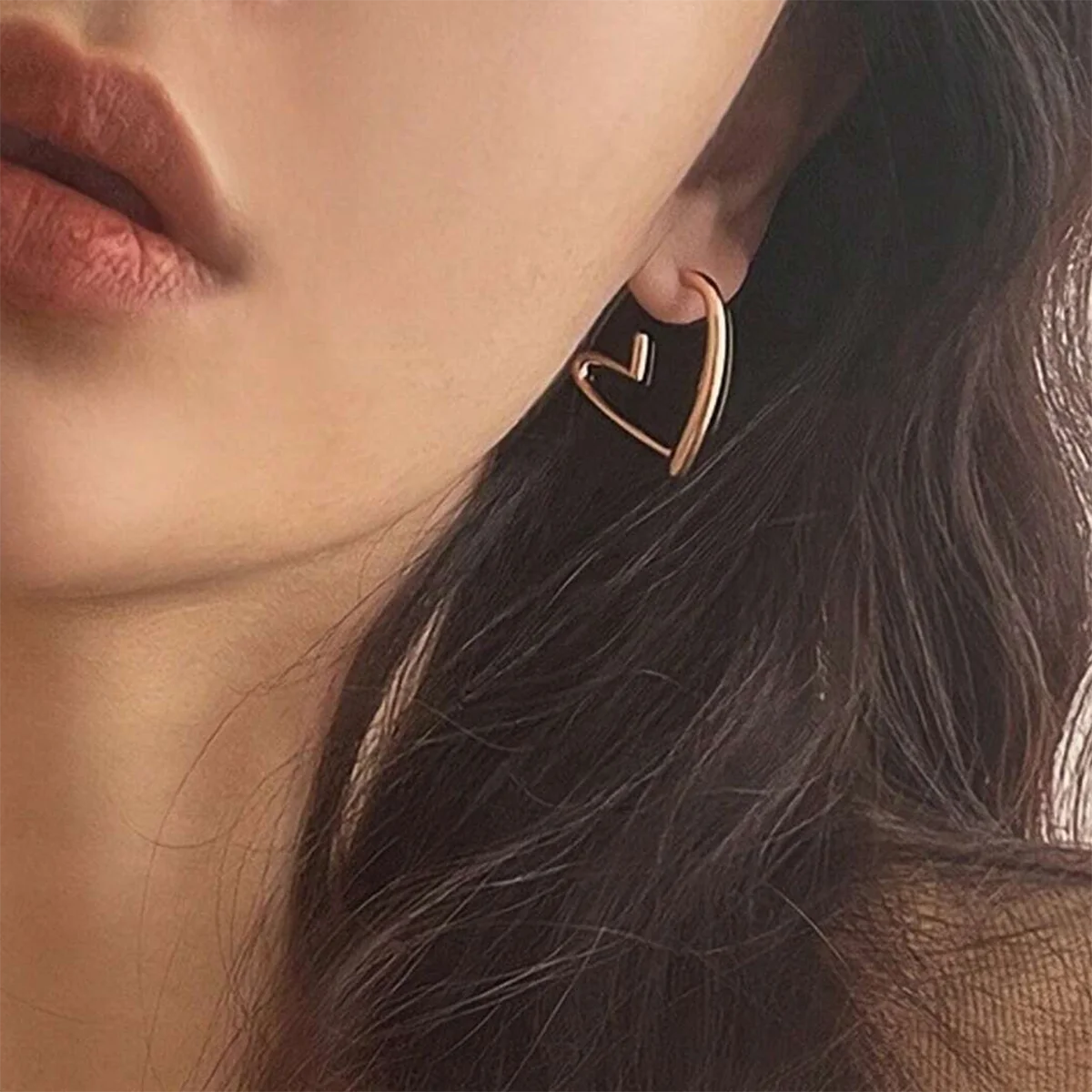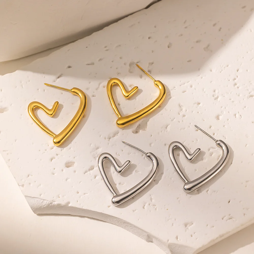 • Simple Irregular Heart-shaped Stud Earrings Fashion Metal Hollow Heart-shaped Earrings Women's Charm Party Jewelry Gifts