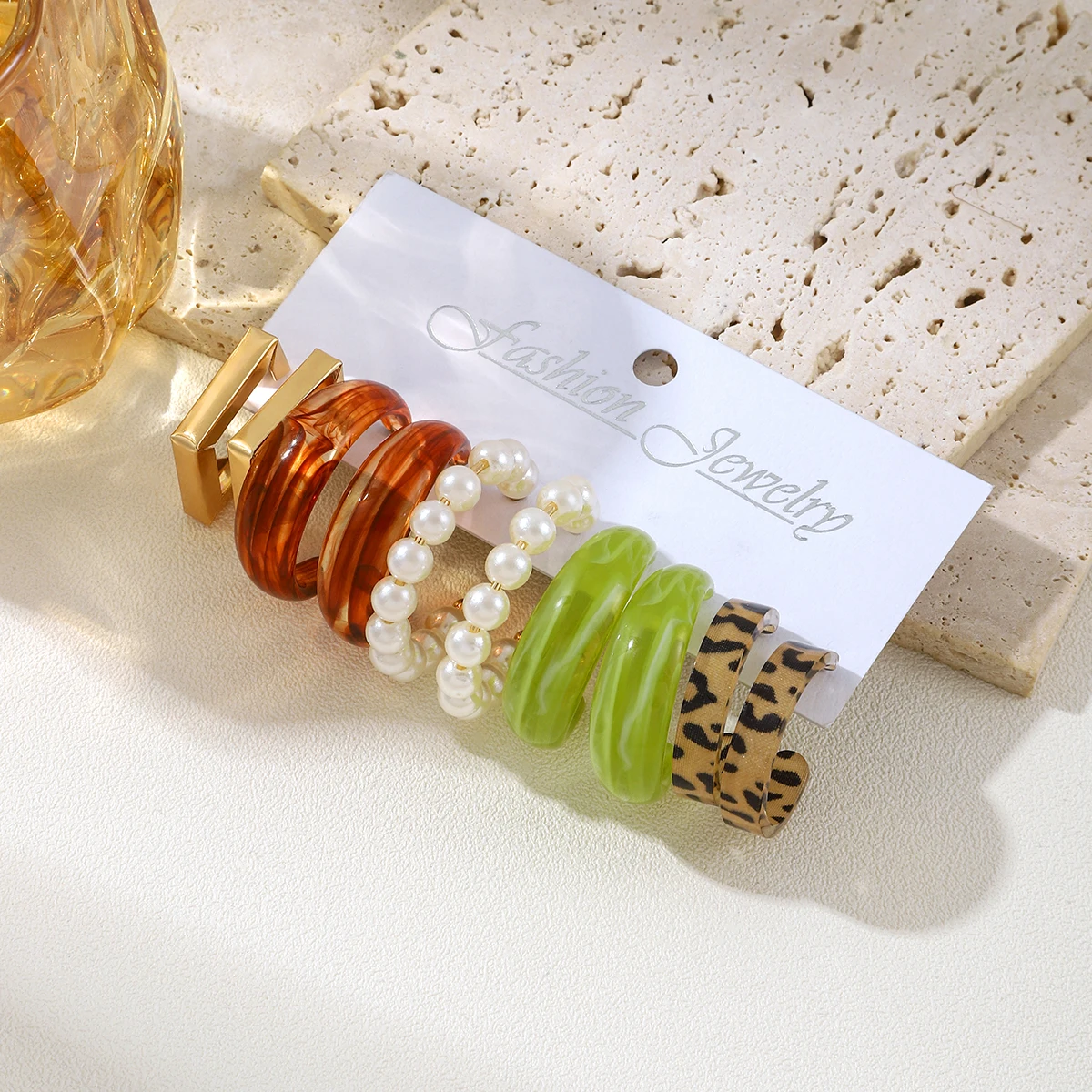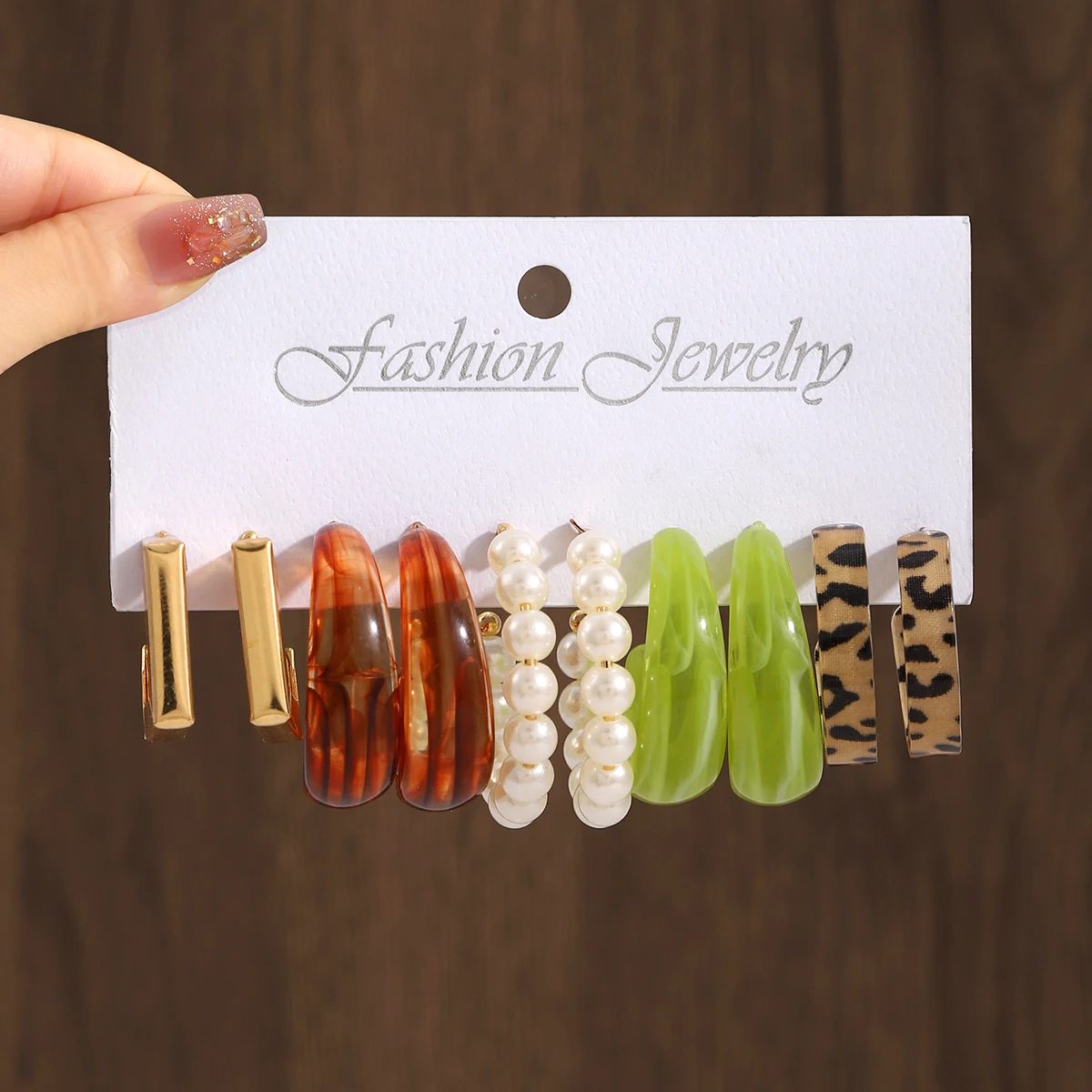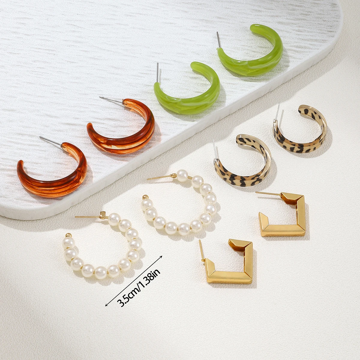 10-20pcs Boho Acrylic Leopard Pattern C-shaped Stud Earrings Fashion Imitation Pearl Earrings Women's Trendy Party Jewelry Gifts