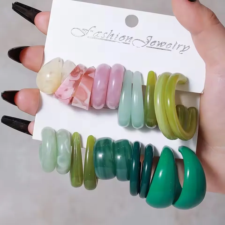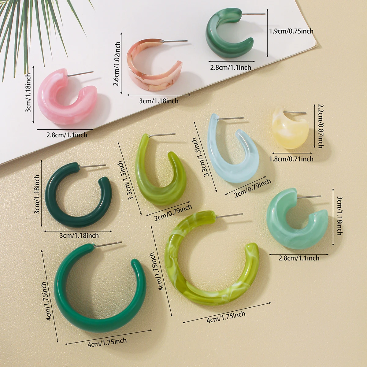 • Elegant Resin Drop Earring Set Exaggerated C-Shaped Design Versatile Daily & Party Wear Ideal Valentine'S Day Gift For Women