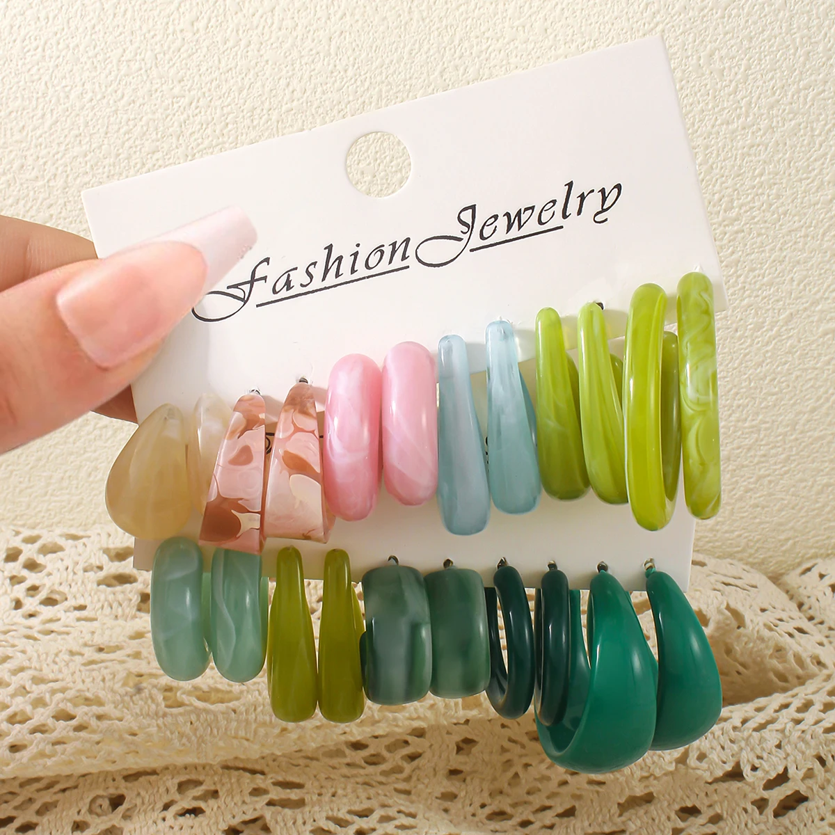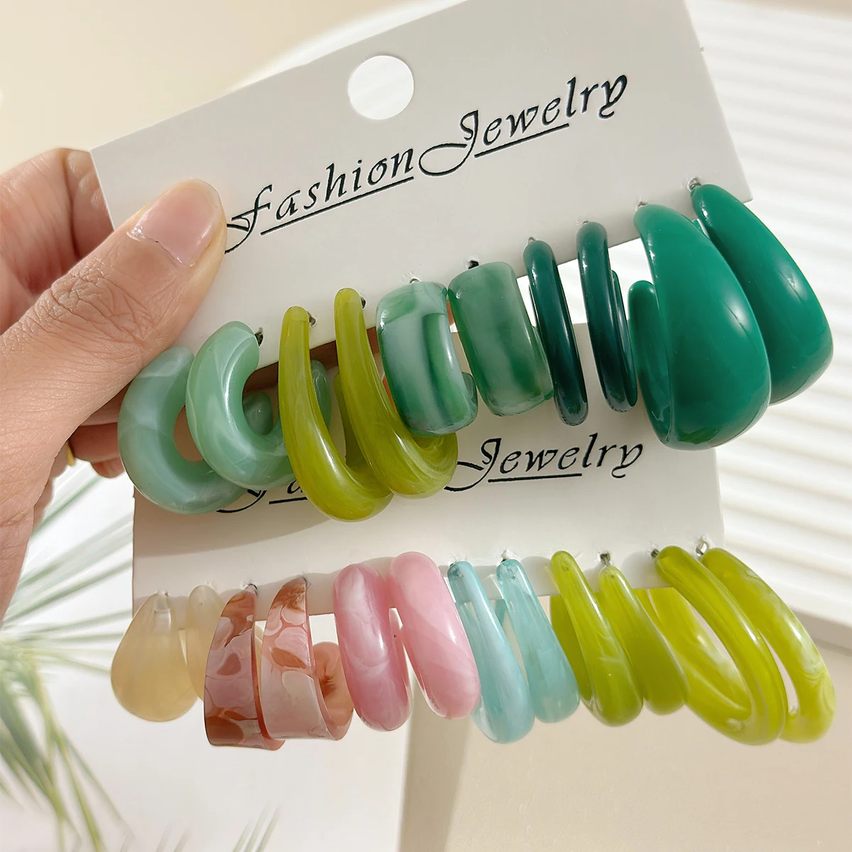 Elegant Resin Drop Earring Set Exaggerated C-Shaped Design Versatile Daily & Party Wear Ideal Valentine'S Day Gift For Women