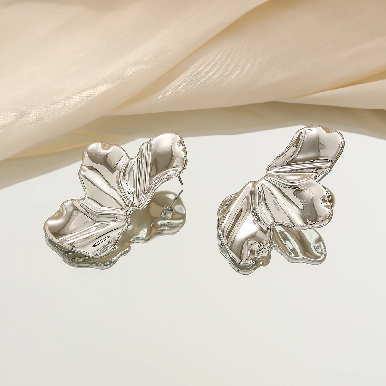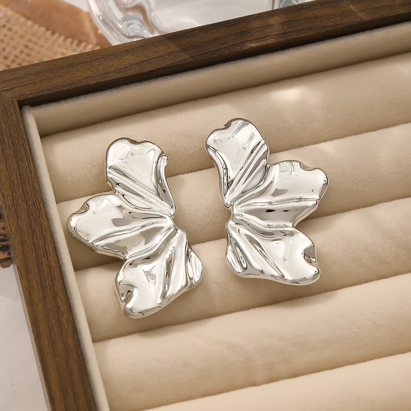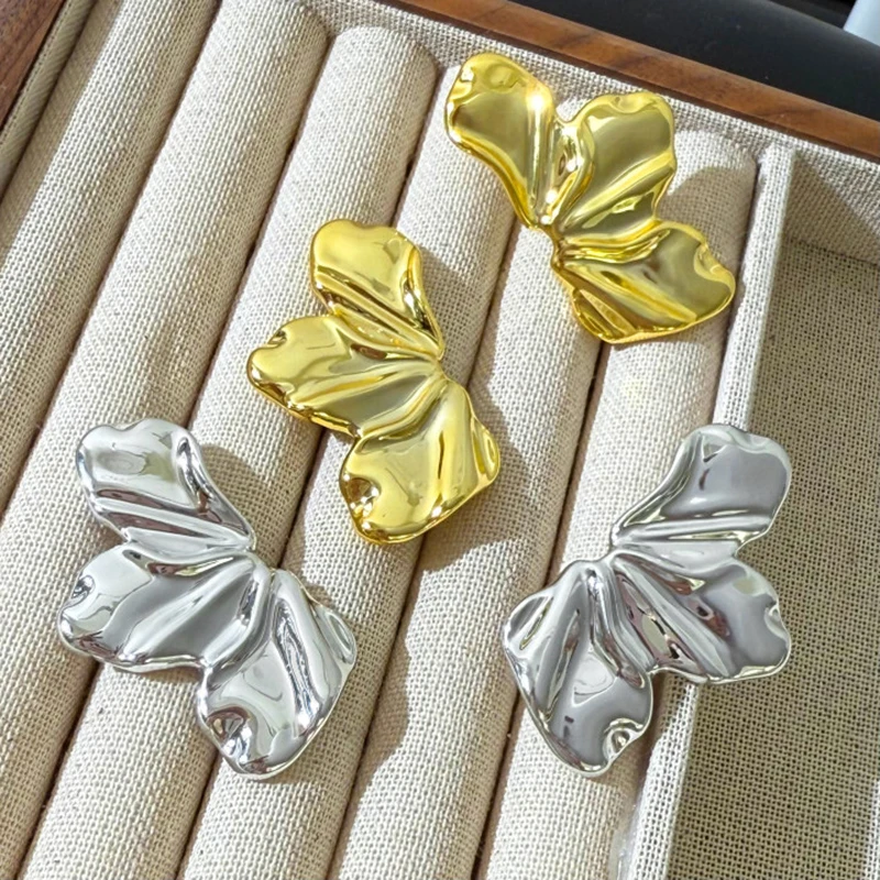 Fashion Unique Petal Design Stud Earrings Elegant CCB Irregular Pleated Earrings Women's Daily Party Banquet Jewelry