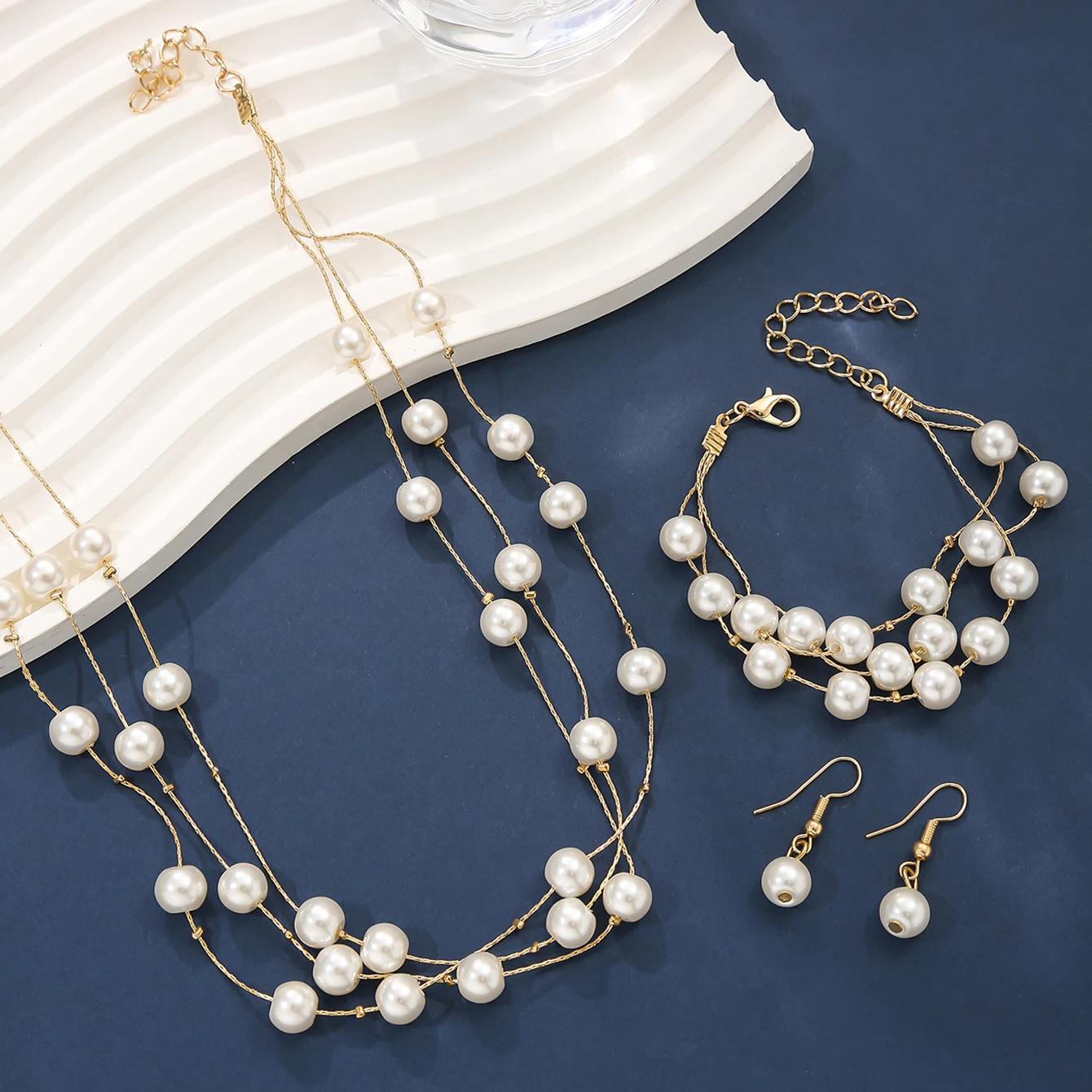 • Women's Elegant Jewelry Set Multi-layered Imitation Pearl Necklaces Bracelets Earrings Simple Daily Wear Dating Party Weddings